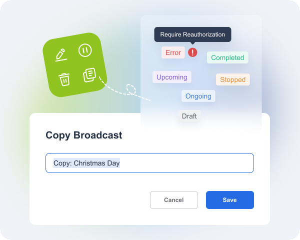 It serves as a centralized location where all broadcast-related data is presented. This includes details such as the content of the broadcasts, the channel type, the scheduled times, the target audience (e.g., specific customer segments or all customers), and the status of each broadcast (whether it's pending, in progress, or completed).