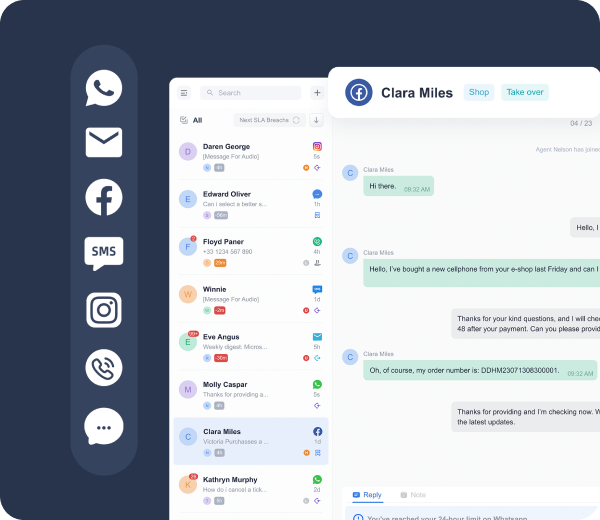 Easy to start a web chat and bridge to a preferred channel or let the customer kick off the conversation directly in WhatsApp, SMS, Instagram, Facebook, Email and more.